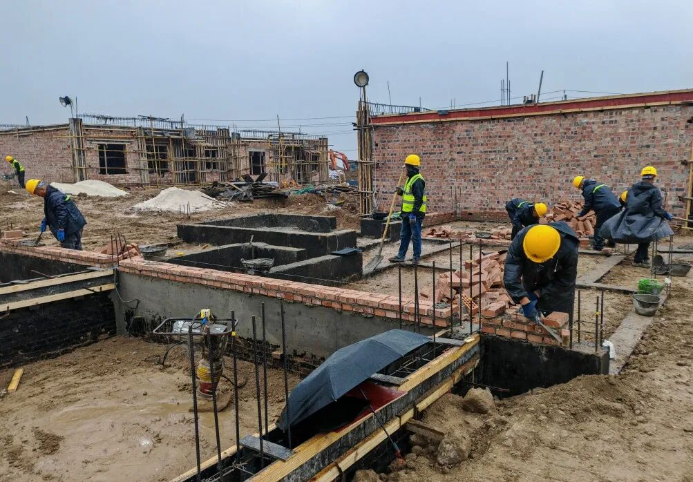 “天公不作美,雨天实在太多了,半个月的施工期里,足足有七八天都在下雨。但我们不能让乡亲们的期待落空!再难也要把影响降到最低,绝不能延误工期。”项目总指挥吴钢表示。面对持续阴雨的困境,项目部第一时间启动雨季施工应急预案,精准应对天气变化:下雨时,赶紧在重点施工区域铺上防水彩条布挡雨;雨一停,马上把彩条布撤掉,同时撒上生石灰吸潮防滑,让施工车辆能顺畅通行,工人们作业也更安全;对主要通道用钢板、碎石做了硬化处理,还在重点作业区搭起防雨棚、铺好防滑垫,就是为了让工人们能在雨天里也能安心施工、抢回进度。项目部还动态优化地基处理工艺,采用级配砂石与石灰换填夯实提升透水性,强化混凝土养护保障工程强度,同时还充分利用降雨间歇抢抓施工节点,并开展雨天作业安全专题培训。“每一步施工都要筑牢安全质量防线,既要抢进度,更要让老百姓住上放心房,这是我们的承诺。”现场安全员补充道。一系列针对性举措,有效降低了降雨对工程的影响,既守住了安全质量底线,也确保了工期按计划推进。