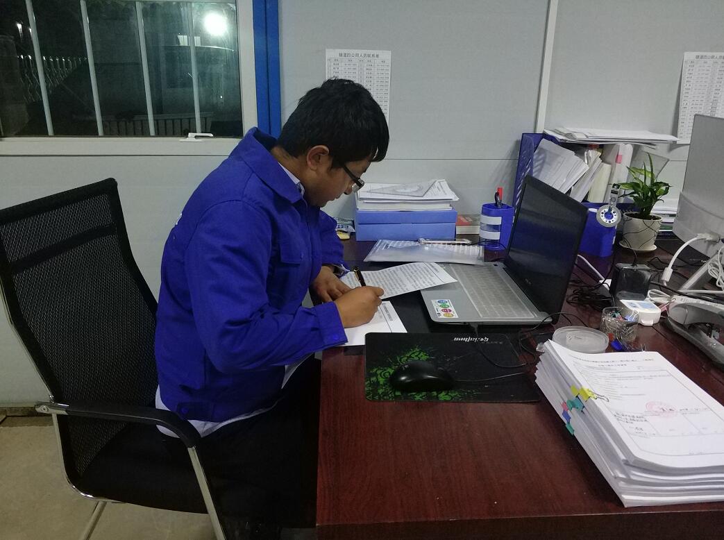他白天在施工现场组织协调各类生产方面的问题,晚上坚持研读政治理论和各专业知识的书籍,以拓宽自己的知识面,提升自己的工作能力和业务水平。同事都开玩笑的说他活得像个即将高考的高中生,他却乐在其中。“这些专业知识上学的时候也学过,现在看比以前要明了多了,以前没有真正在施工现场待,坐在教室里学跟现在感觉还真是不一样,以前有很多东西真是没学透,我这叫温故而知新!”说完他哈哈一笑。